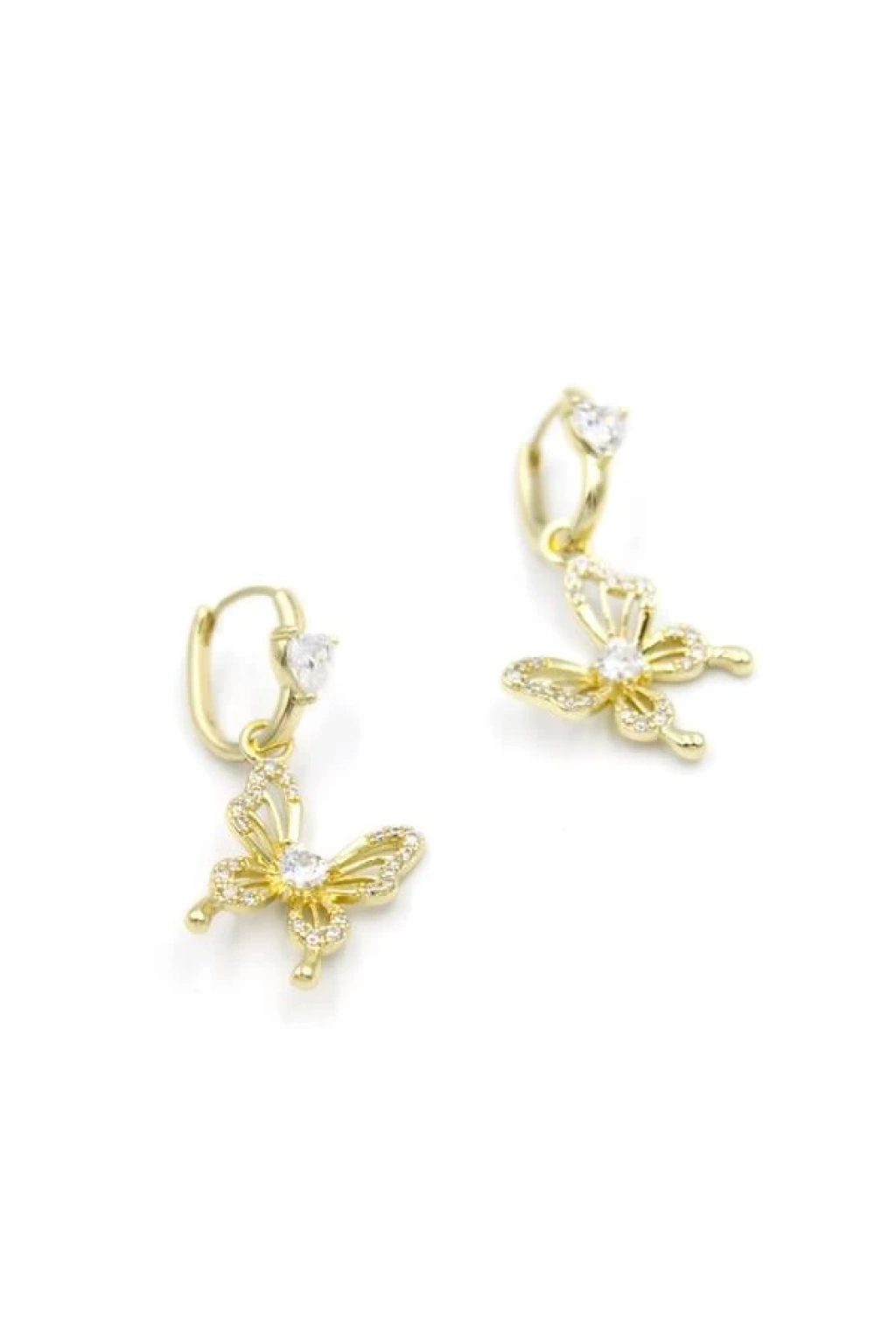 BFS Sallantılı Beyaz Mineli Gold Renk Kadın Küpe
