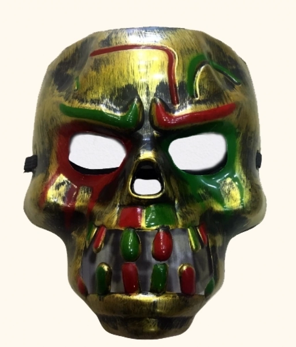 Kırmızı Kanlı Dişli Dracula Kafatası Maskesi Altın Renk