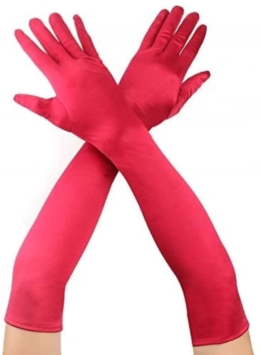Kırmızı Renk Dirseğe Kadar Uzun Kumaş Eldiven 40 Cm