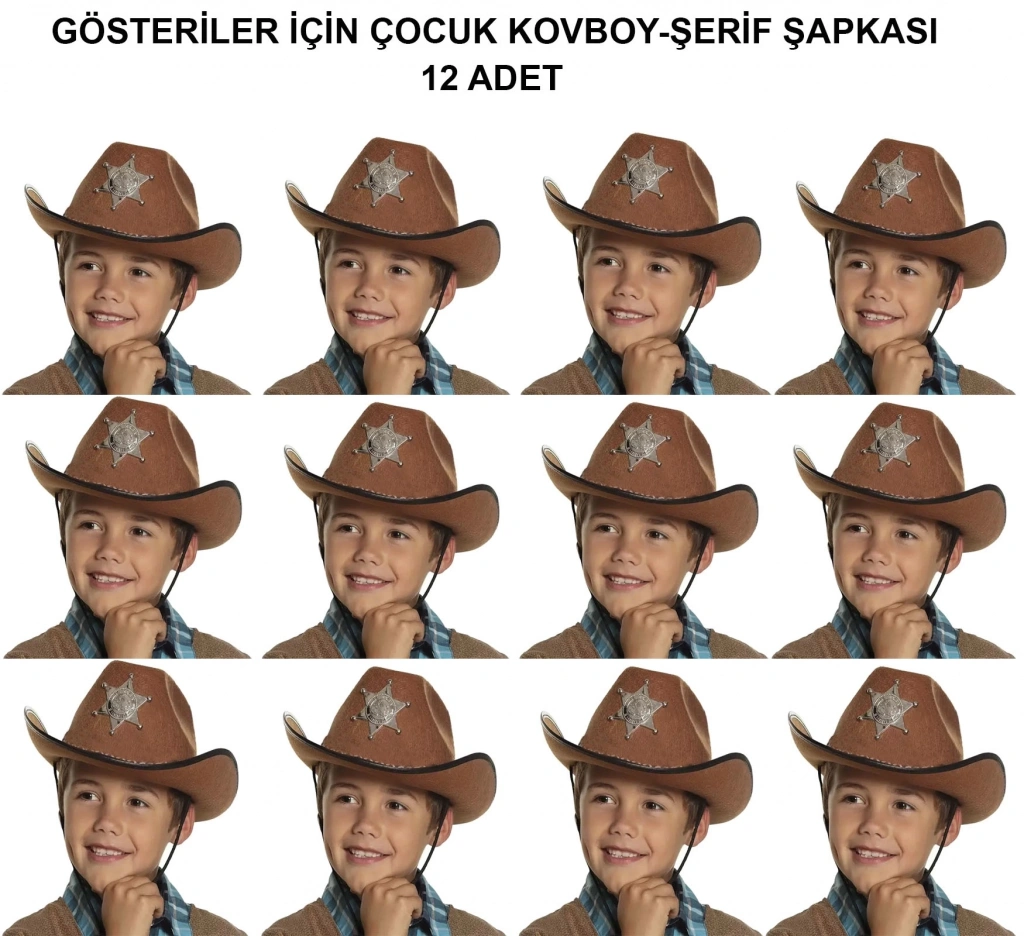 Çocuk Kovboy Şerif Şapkası 12&rsquoli Set &ndash Kostüm ve Gösteri Aksesuarı