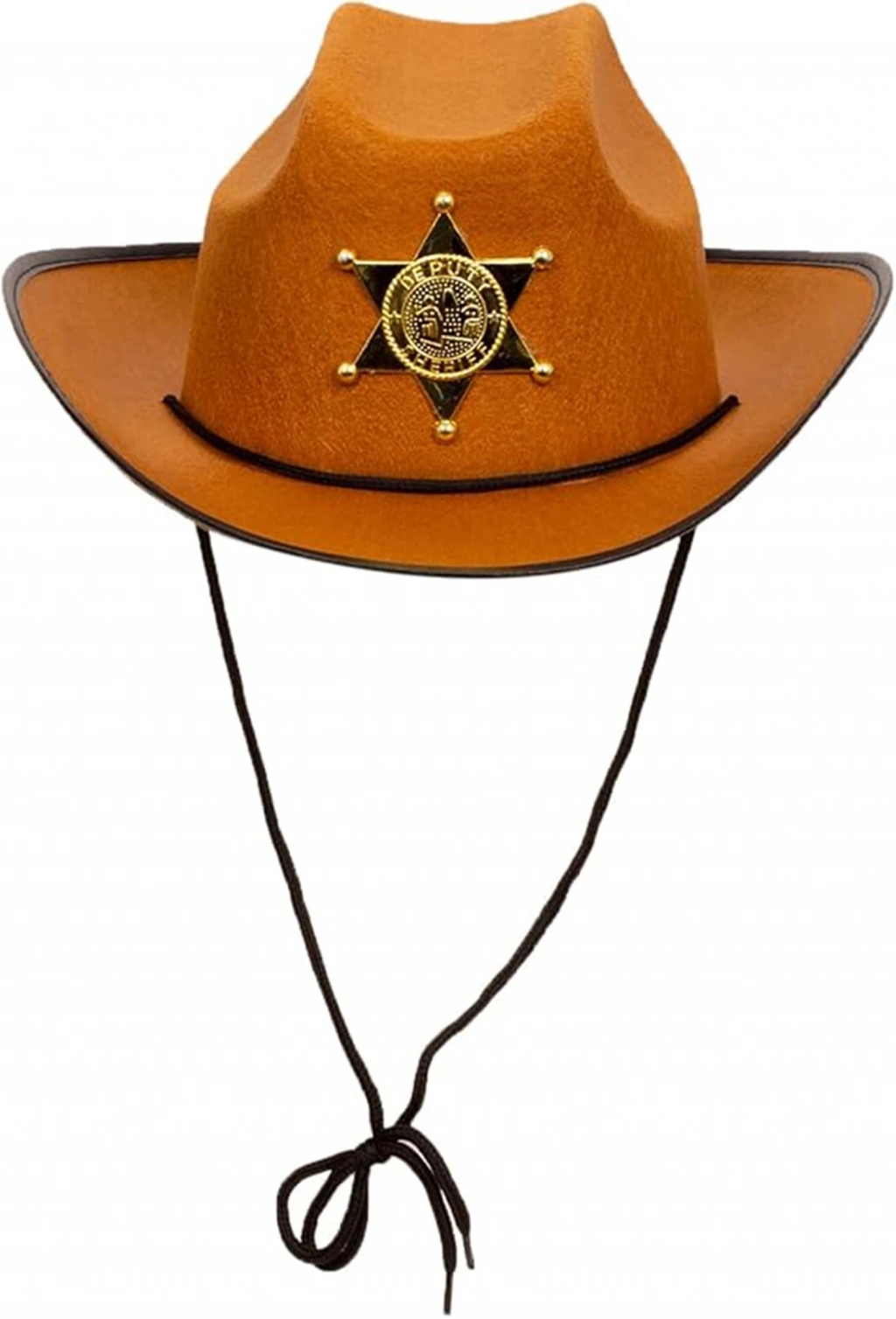 Şerif Rozeti Tasarımı: Şapkanın ön kısmında bulunan metal görünümlü yıldız rozeti sayesinde şerif havasını tamamlar.