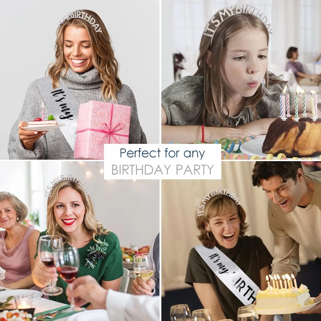 Kristal Taşlı İt's My Birthday Yazılı Parti Tacı