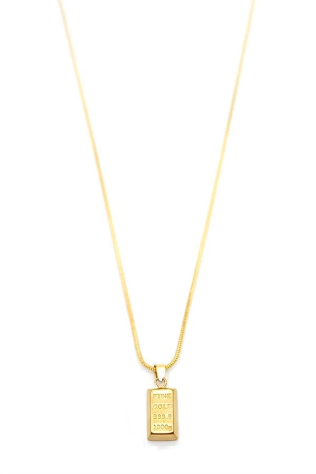 BFS 316L Çelik Gold Renk Külçe Altın Model Kolye