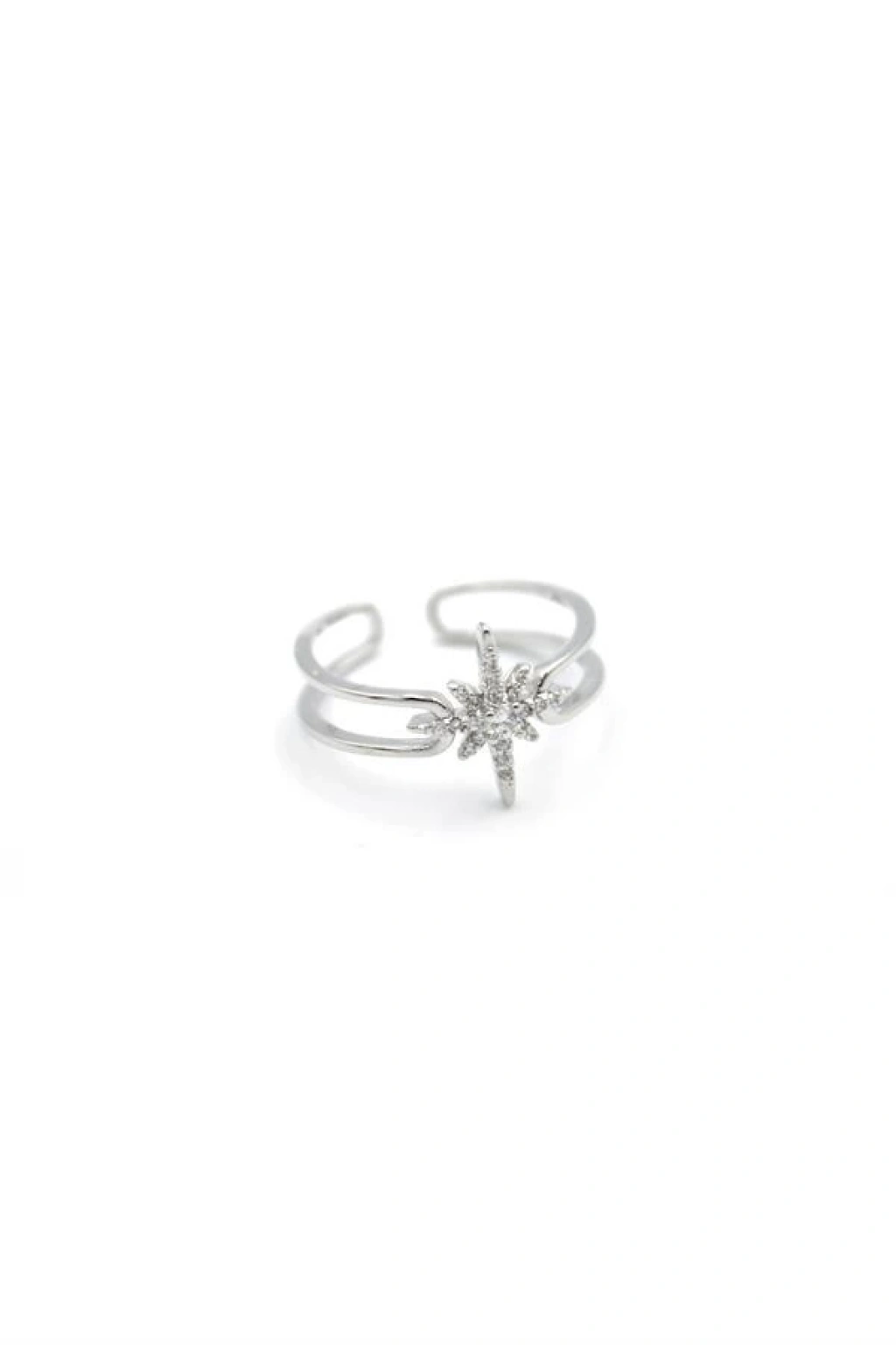 BFS Pirinç Gümüş Renk Zirkon Taşlı Kutup Yıldızı Model Kadın Yüzük