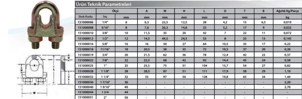 A tipi klemens, çelik halat sağlam ve güvenli bir şekilde bağlayabilmek için kullanılan bir üründür.