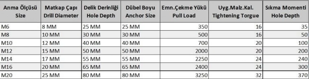 Çift aşamalı montaj yapılır yani montajında ilk önce dübel deliğe çakılır sonra cıvata ile çevrilerek kovanın delik içerisindeki çepere tutunması sağlanır.