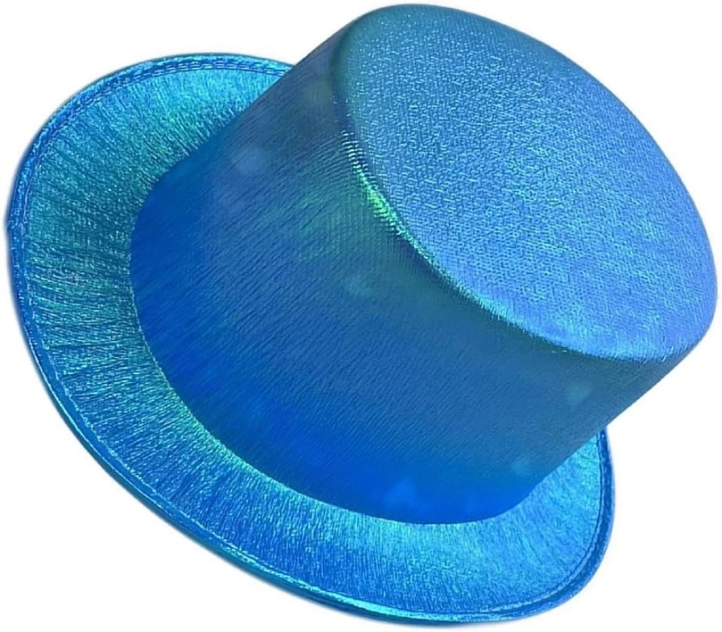 Mavi Renk Işıltılı Hologram Kumaş Kaplama Fötr Silindir Şapka Yetişkin Boy, partiler, festivaller ve diğer özel günler için mükemmel bir aksesuardır. 58 cm baş çevresi için uygundur ve ışıl ışıl parıldayan yeşil hologram kumaşla kaplıdır.