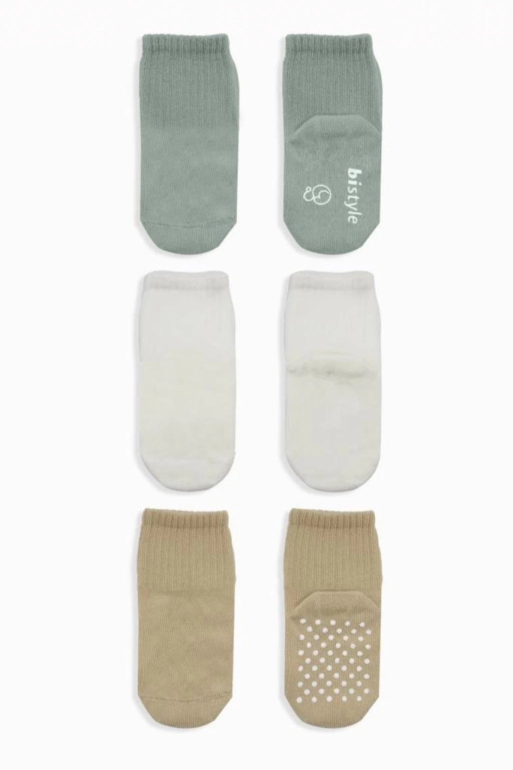 Mey İthalat® Basic Kaymaz Penye Soket Çorap 3'Lü BS10107 Nil Ekru Bej