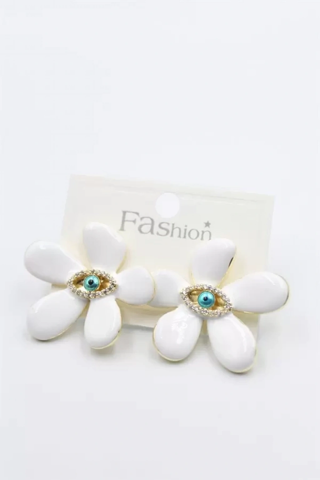 Mineli Çiçek Küpe - Beyaz