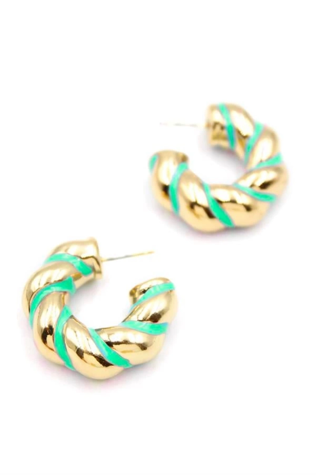 BFS Mineli Karışık Renkli Gold Pirinç Kadın Küpe