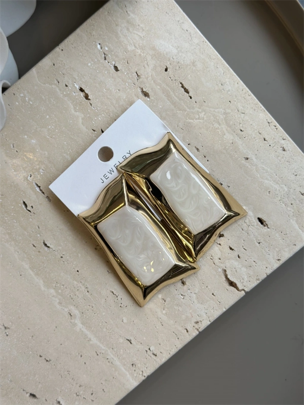 Mey İthalat® Siyah Kare Model Vintage Gold Renk Kadın Küpe