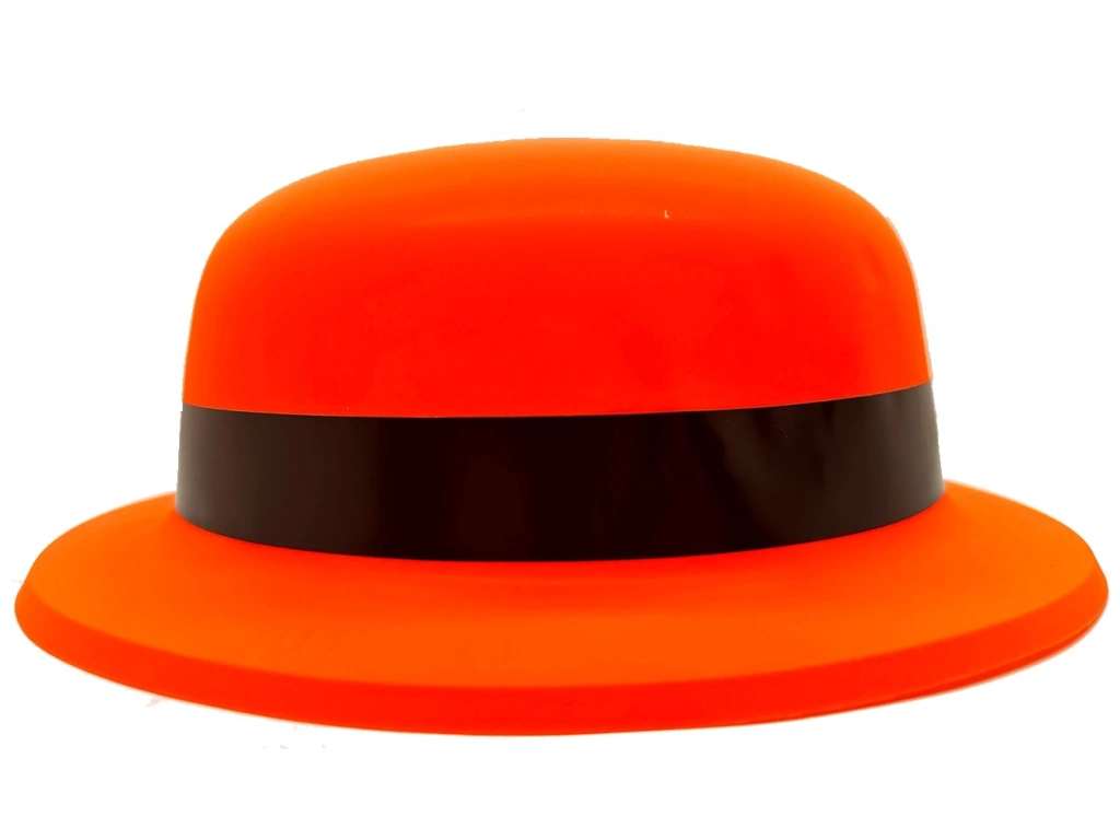 Neon turuncu rengi ile göz kamaştıran plastik melon şapkamız, partilerin vazgeçilmez aksesuarı olacak Hafif ve rahat yapısıyla tüm gece boyunca dans edebilir, eğlenebilirsin.