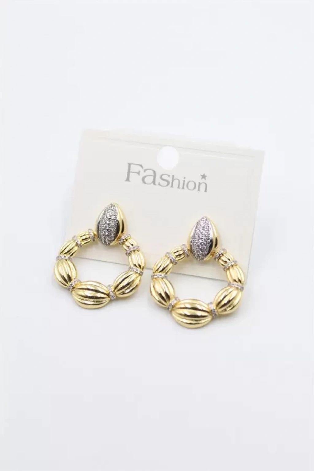 Mey İthalat® Pirinç Gold Renk Üçlü Görünüm Kadın Küpe