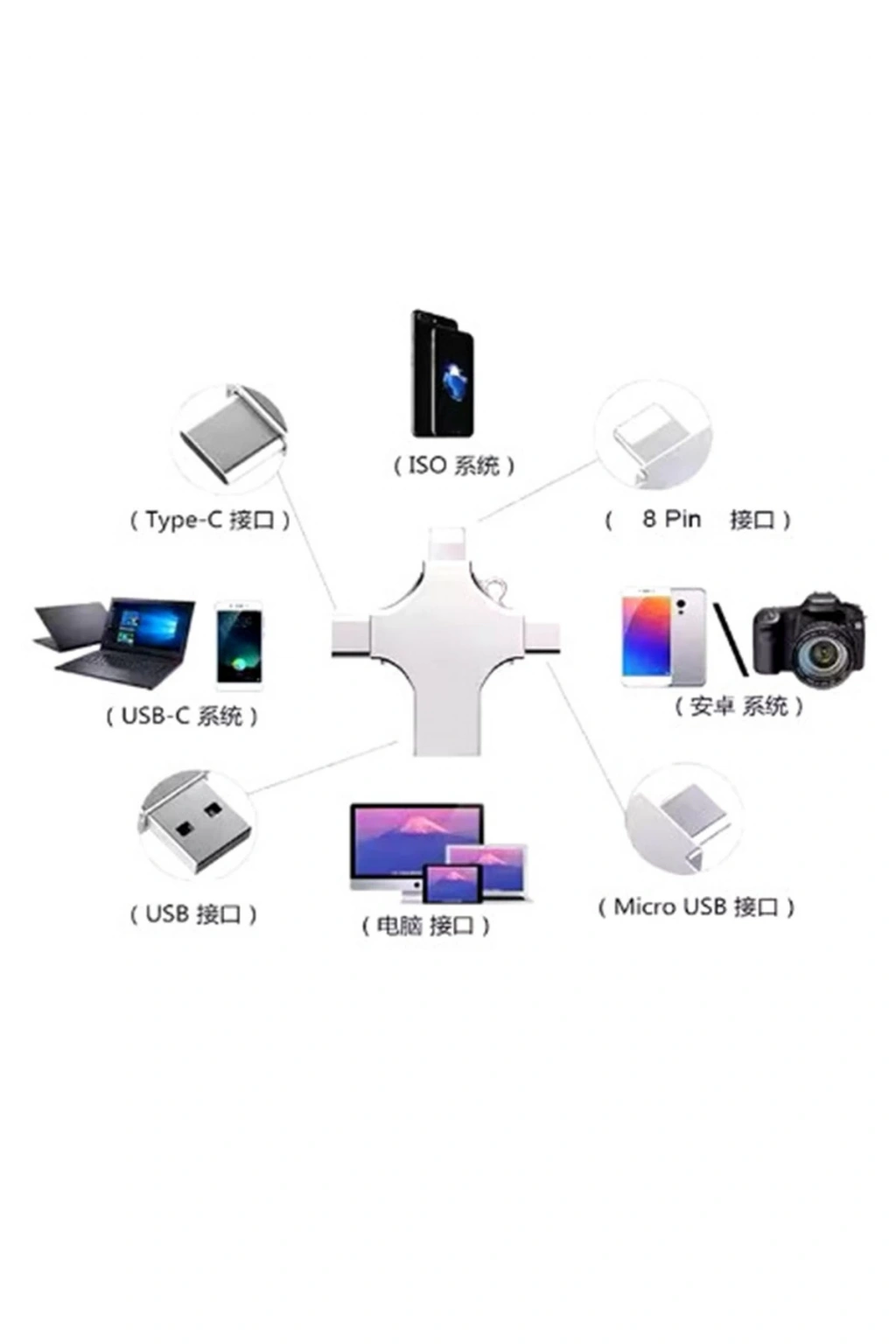 Birden fazla cihazla uyumlu, çok işlevli USB Bellek 2.0 Lightning,   OTG, Type-C, Micro SD ve Kart Okuyucu ile veri aktarımı ve depolama işlemlerinizi   hızlı ve kolay bir şekilde gerçekleştirin. Bu çok yönlü kart okuyucu, telefonlar, tabletler,   bilgisayarlar ve diğer akıllı cihazlar arasında veri transferi yaparken size pratik bir çözüm sunar.   Hem Apple cihazları (Lightning) hem de Android cihazlar (Type-C ve Micro USB) ile uyumlu olan bu ürün,   ayrıca Micro SD kartlarınızı da destekler.