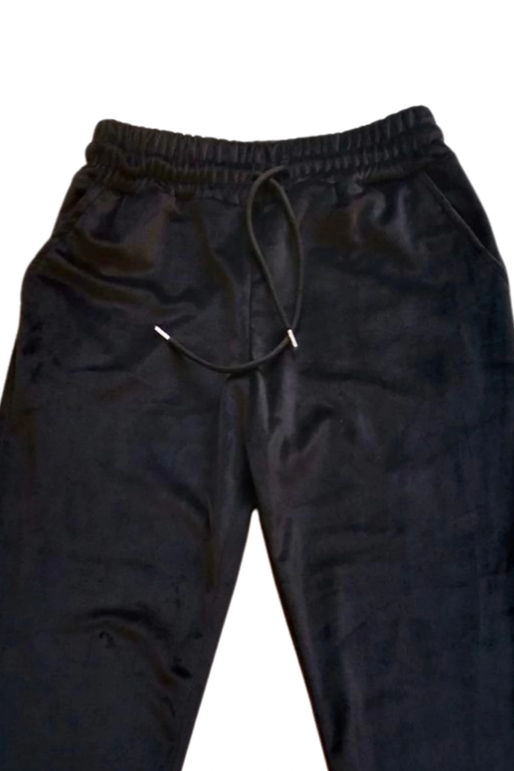 Parlak Kadife Cepli Pantolon Eşofman Pijama Altı Unisex Lastikli Paça Siyah
