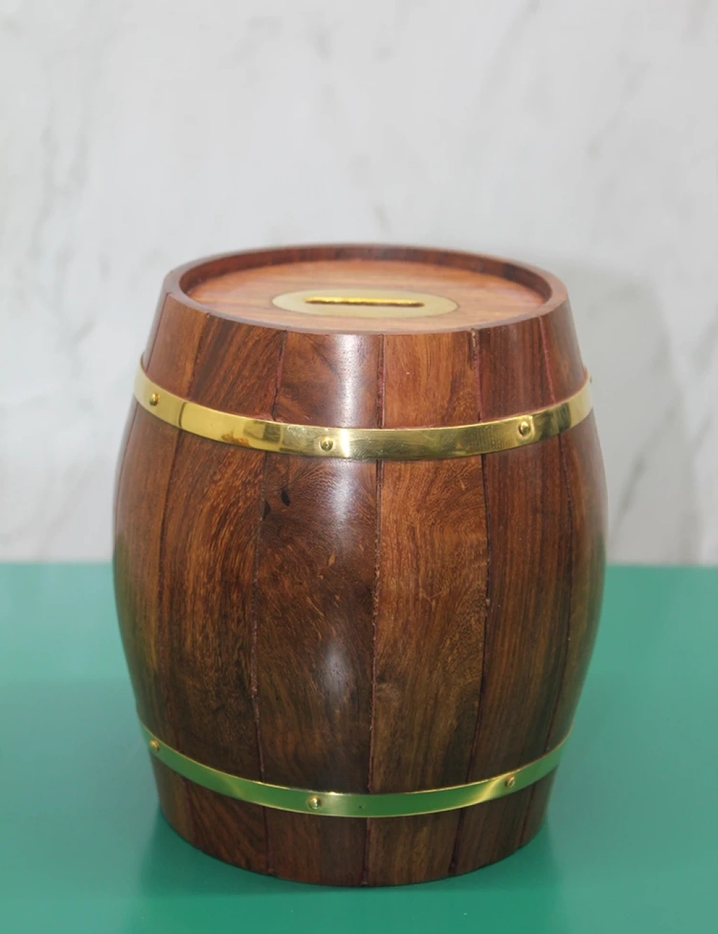 Pirinç Ahşap Fıçı Kumbara 15 Cm Wb538