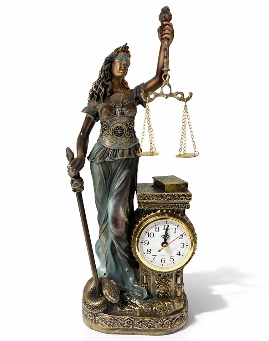 Polyester Saatli Adalet Figürü Alk4414 Ürün Ölçüleri 15*10 Cm