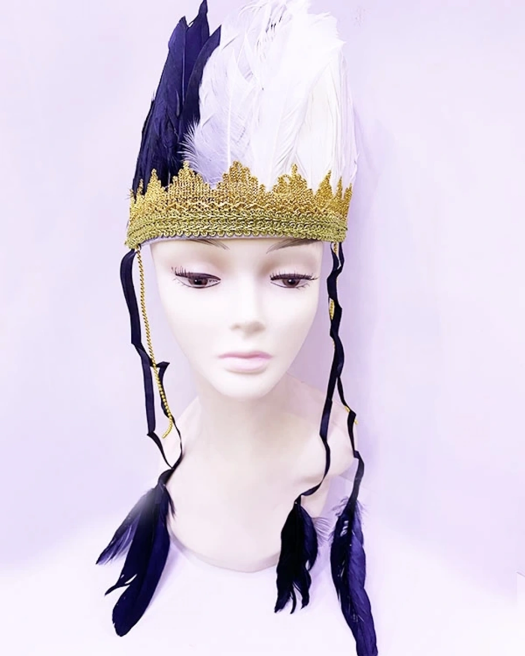 Siyah Beyaz Renk Tüylü Kızılderili Başlığı | Taraftar Başlığı