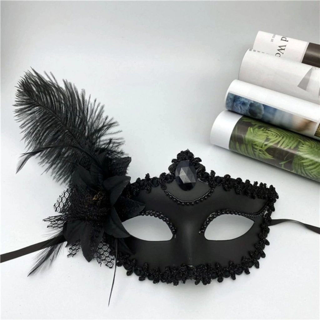 Siyah Renk Yandan Tüylü Güllü Parti Balo Venedik Maskesi 16x22, gizemli ve zarif bir görünüm oluşturmak isteyenler için tasarlanmış özel bir üründür. Siyah rengin asaleti ve yan tarafındaki tüy ve gül detayları ile göz alıcı bir stil sunarken, Venedik maskelerinin gizemli ruhunu da yansıtır.