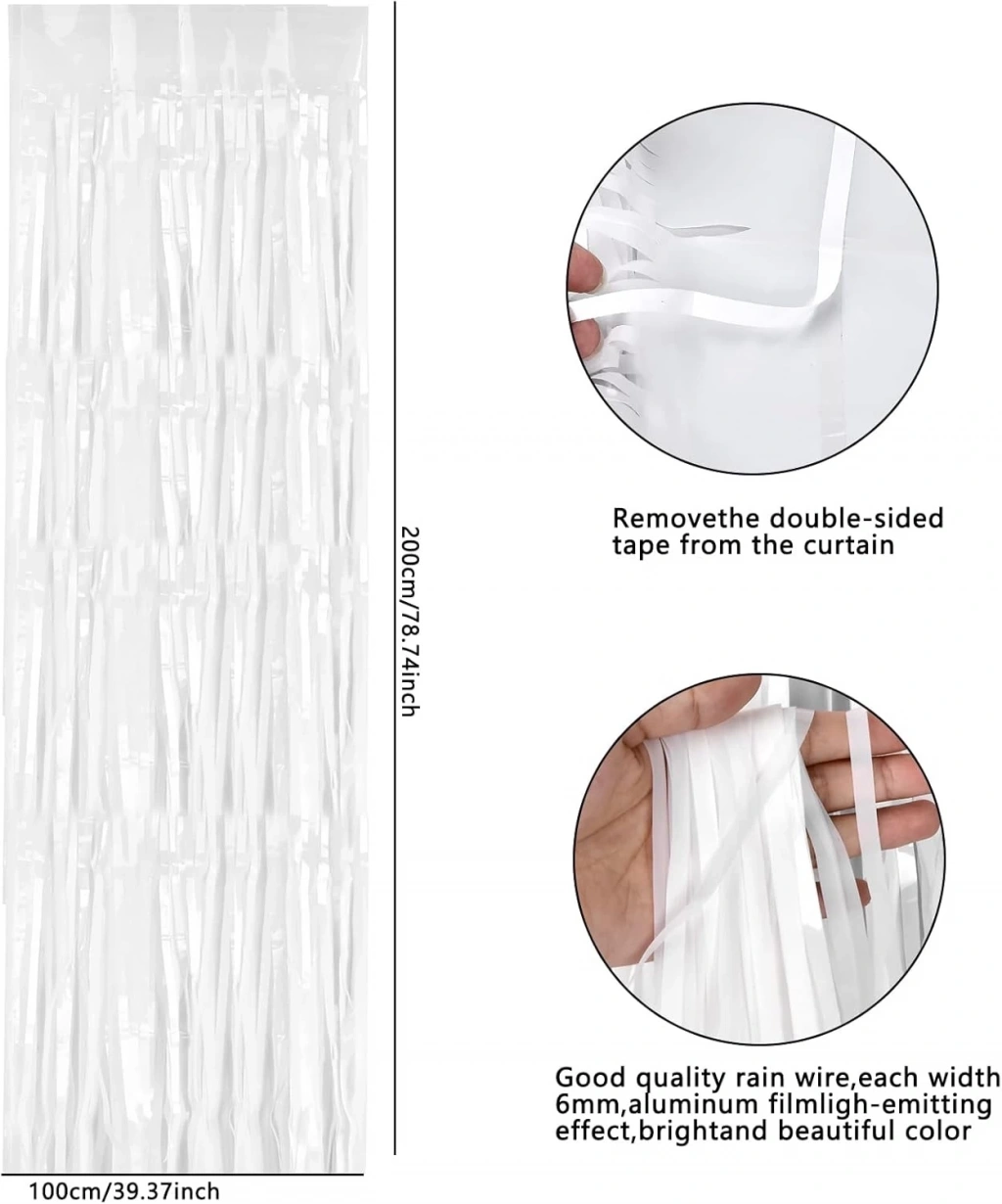 Parti organizasyonlarınızda sadece kapı değil duvar, perde gibi alanları da süsleyebileceğiniz Işıltılı Beyaz Püsküllü Perde.