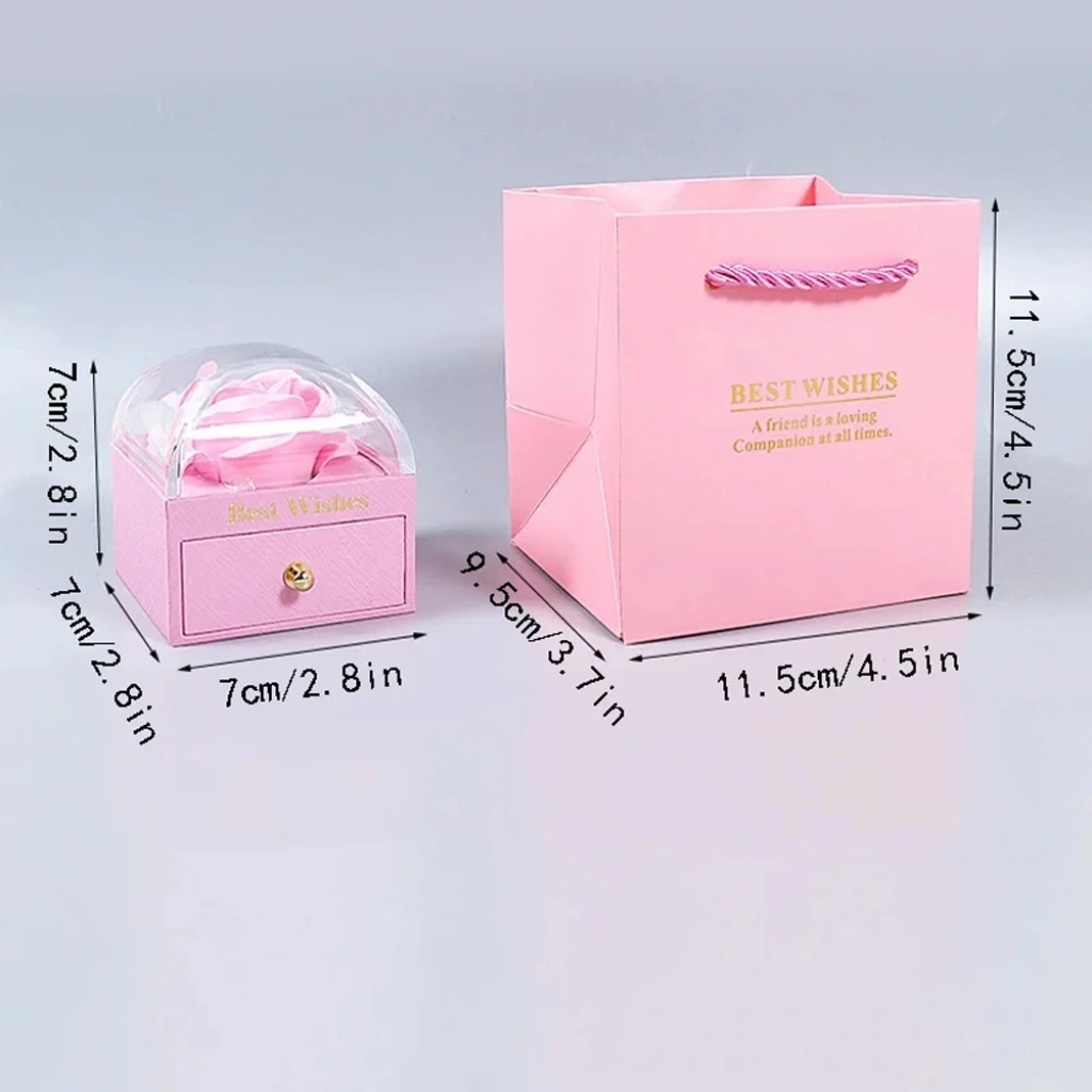 Sonsuz Gül Takı Kutusu, Takı Yüzük Kutusu, Güllü Yüzük Kutusu, Kutu Ölçüsü: 7 cm x 7 cm x 7 cm