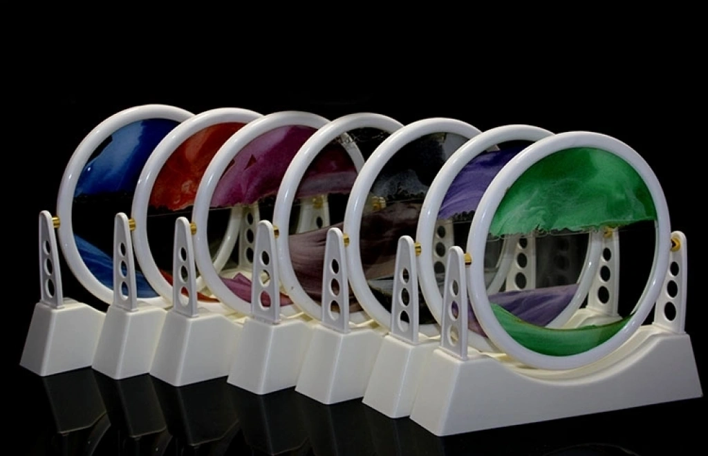 Mey İthalat® Renkli Cam Kum Saati – Dekoratif Masaüstü Zaman Ölçer, Estetik Ofis ve Ev Aksesuarı