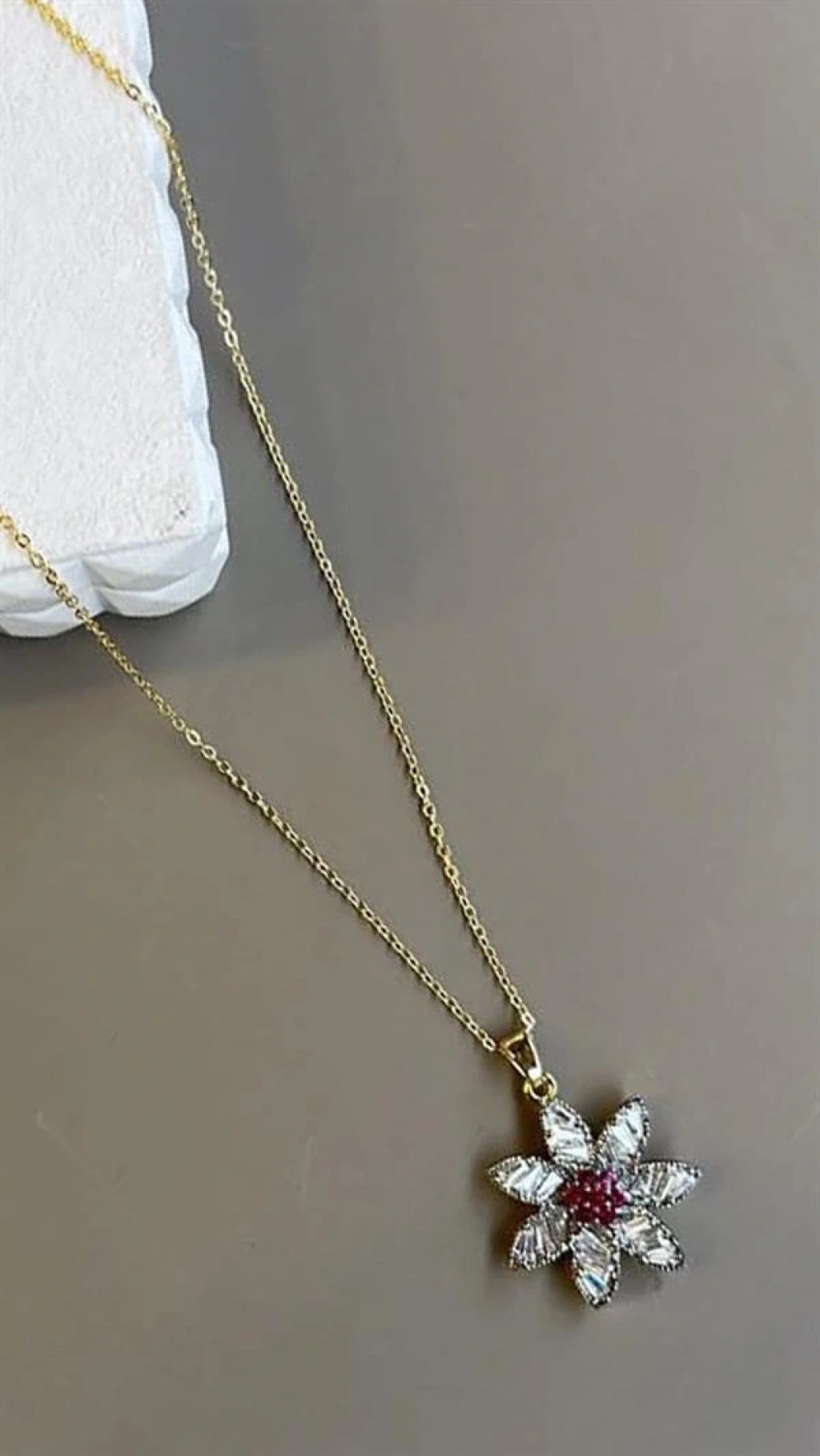 Taşlı Çiçek Kolye - Altın