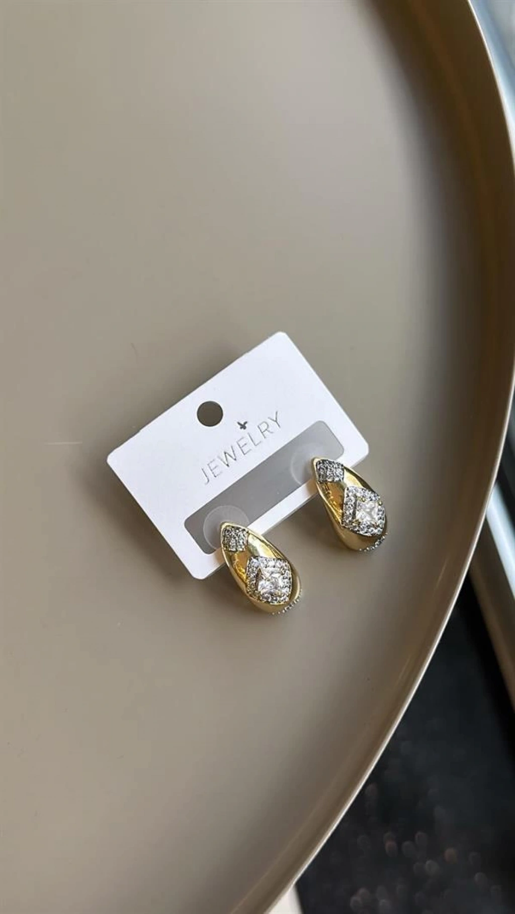 BFS Pirinç Gold Renk Zirkon Taşlı Kalp Model Kadın Küpe