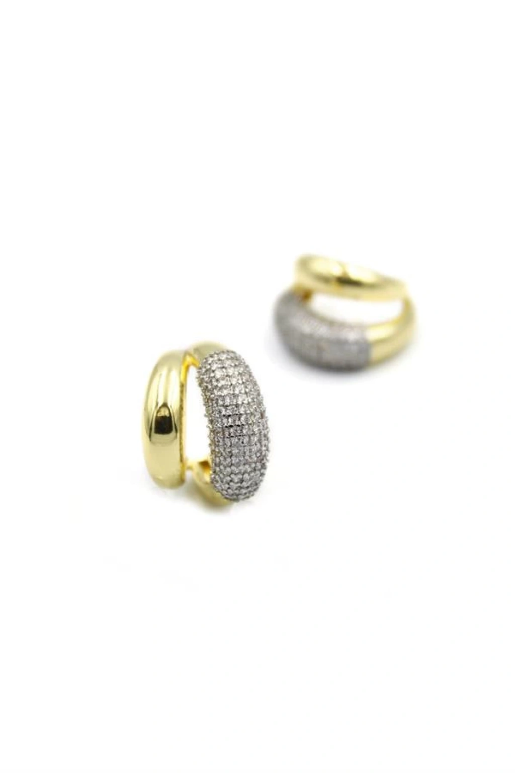 BFS Kaburga Model Zirkon Taşlı Pirinç Kadın Küpe