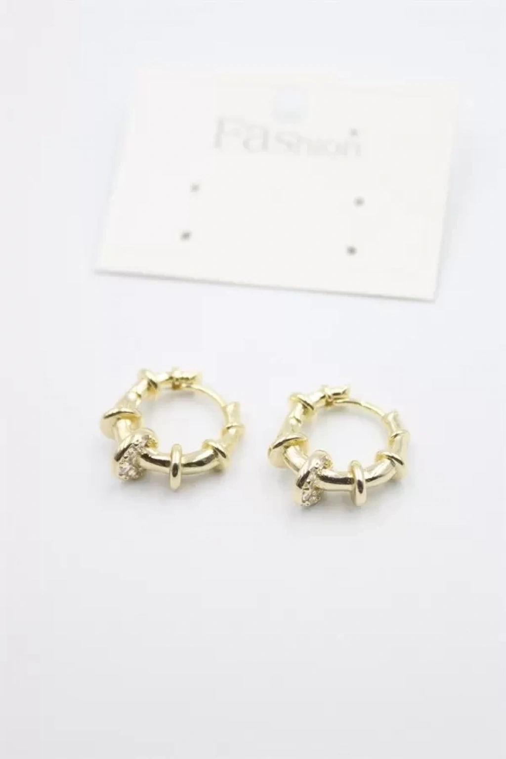 Taşlı Sarmalı Halka Küpe - Altın