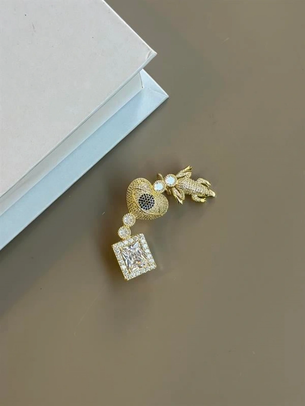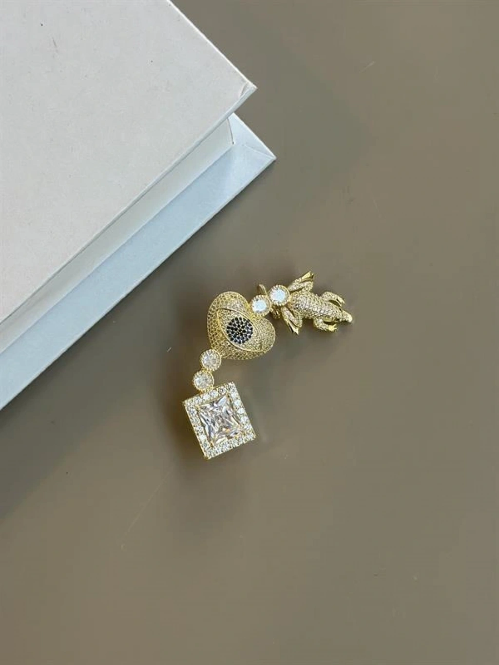 BFS Pirinç Gold Renk Zirkon Taşlı Kalp Model Kadın Küpe