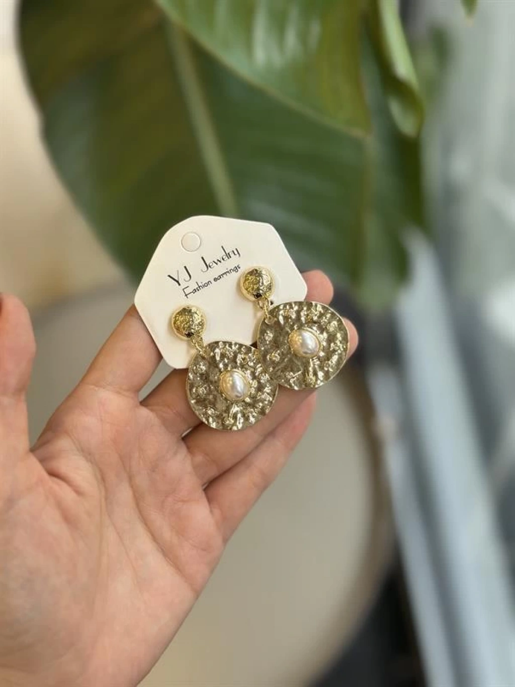 BFS 316L Çelik Gold Renk Beyaz Minelik Yonca Model Kadın Küpe
