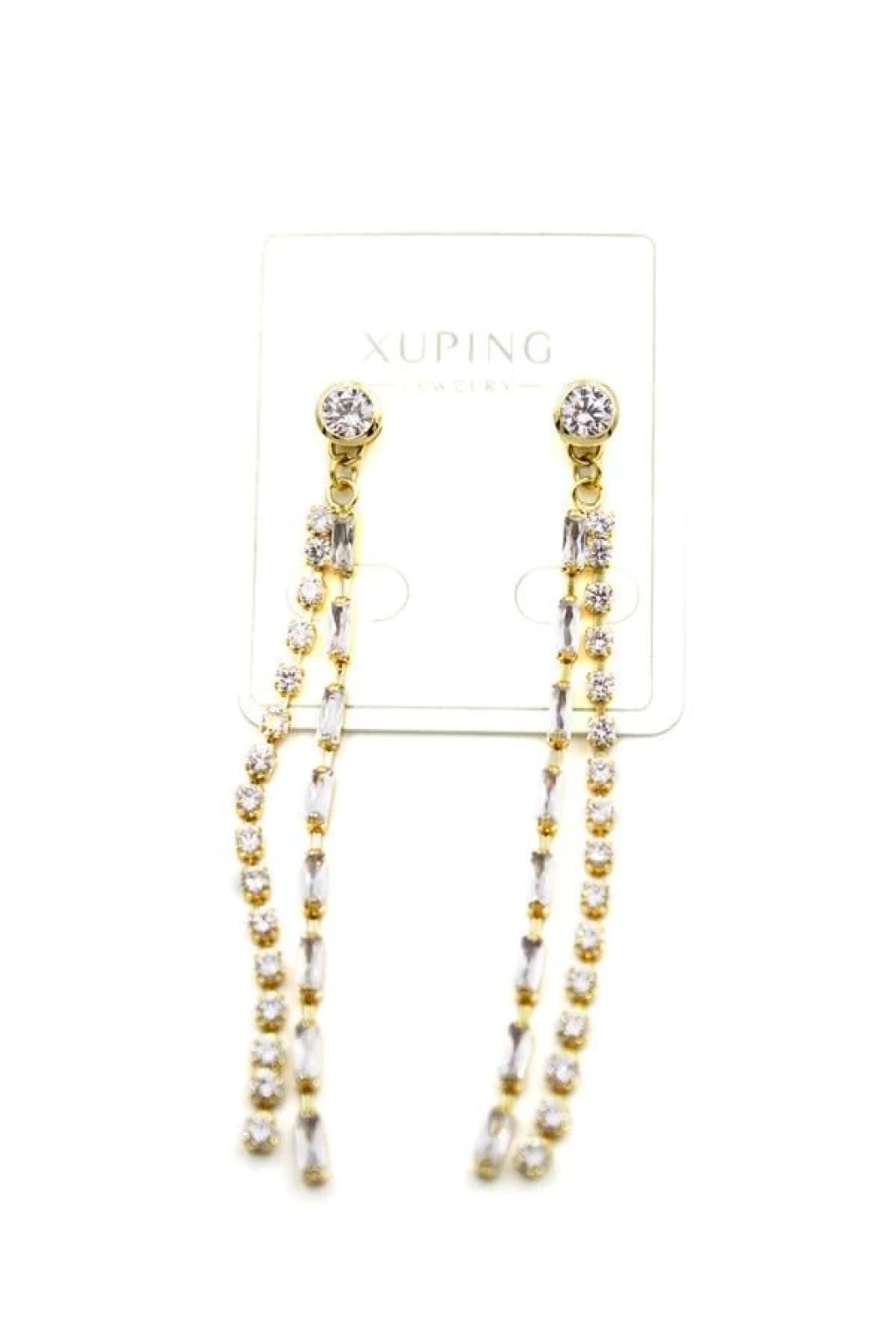 BFS Sallantılı Beyaz Mineli Gold Renk Kadın Küpe
