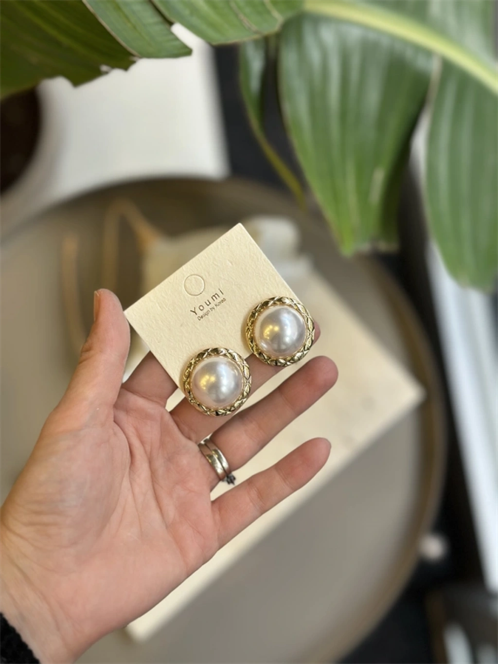 Mey İthalat® Pirinç Gold Renk Sarmal Model İncili Kadın Küpe