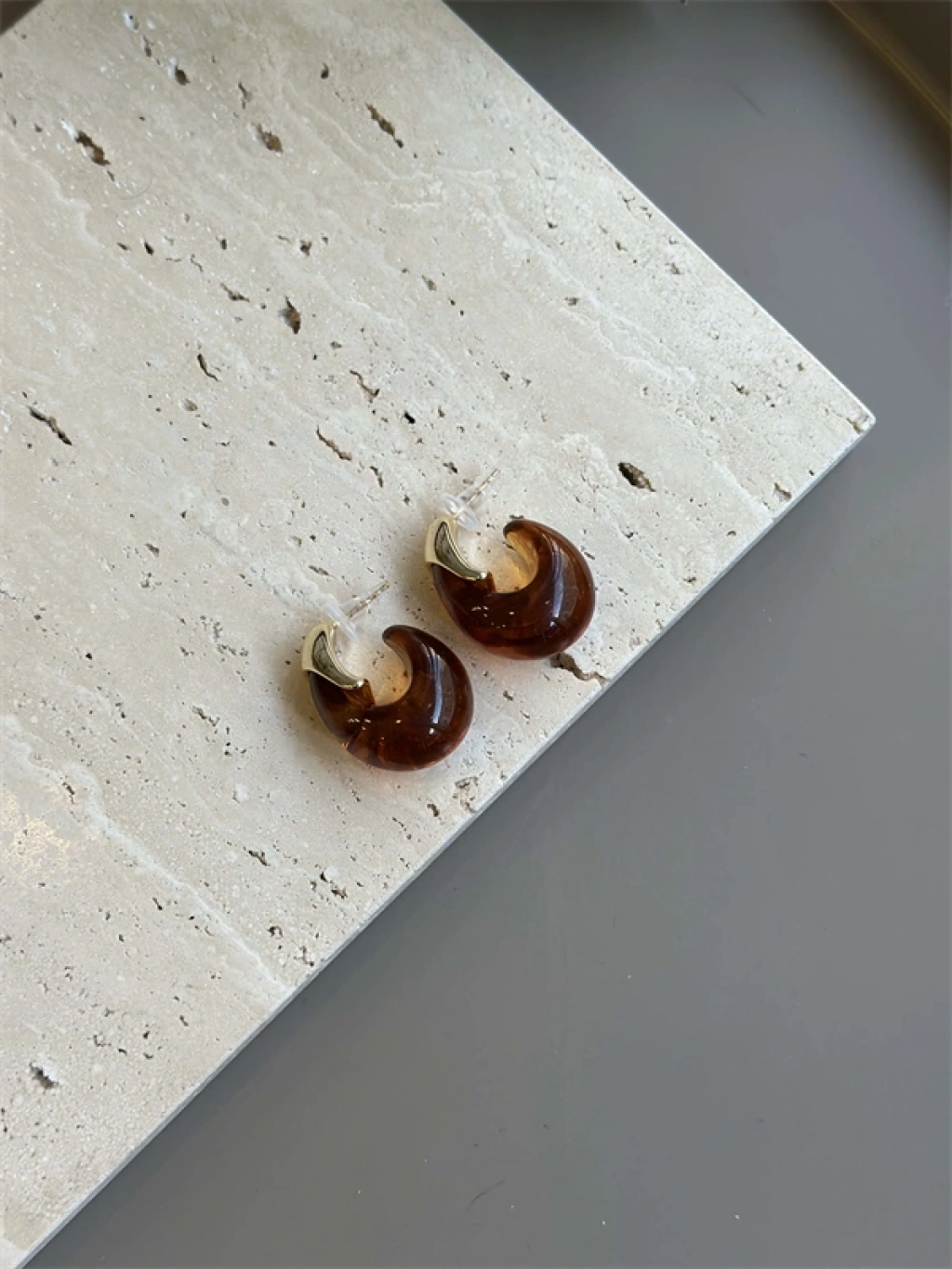 Mey İthalat® Kahverengi Vintage Model Gold Renk Kadın Küpe