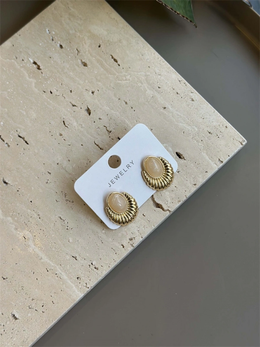 Taşlı Küpe - Krem