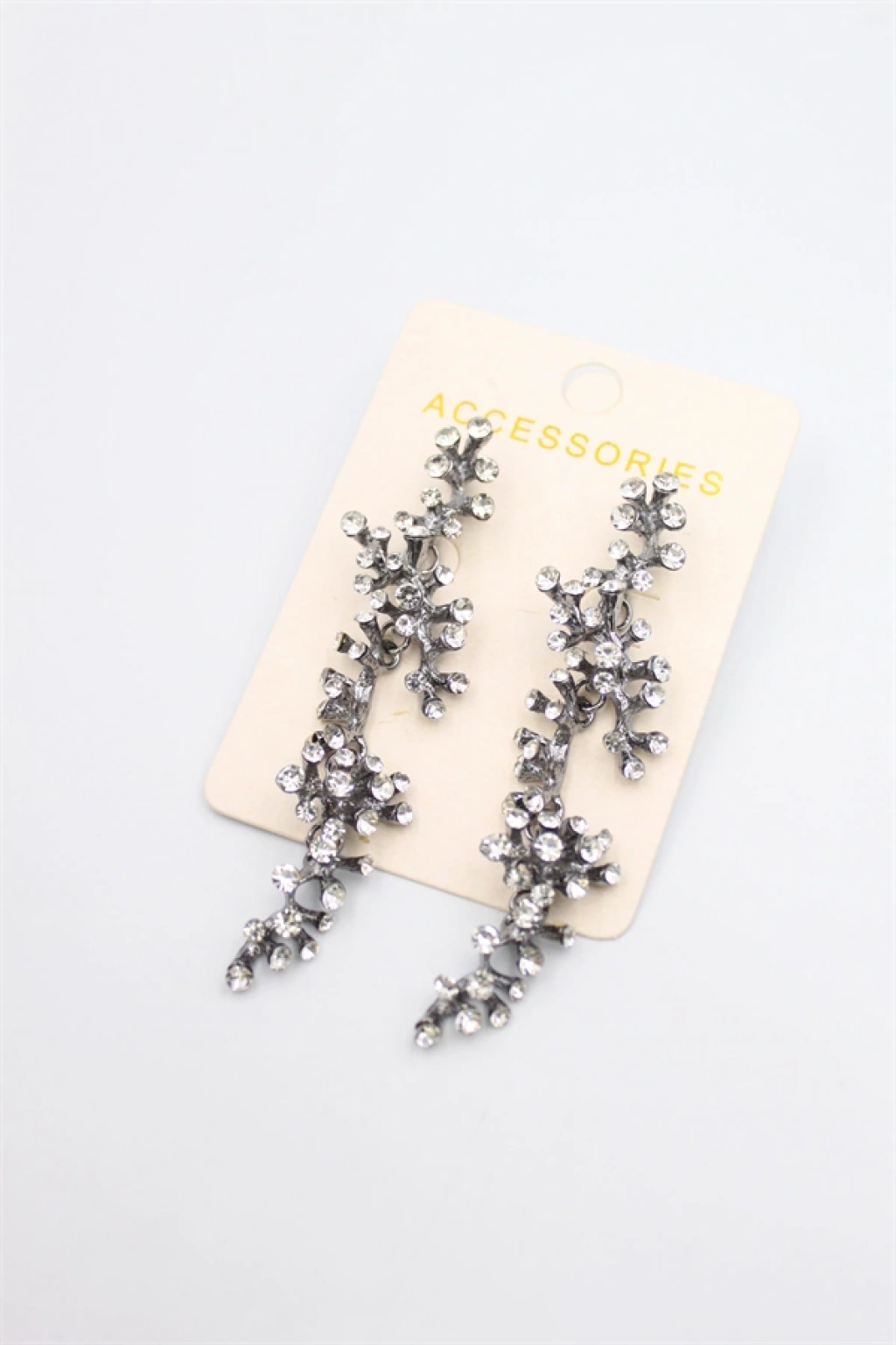 Mey İthalat® Pirinç Gold Renk Siyah Taşlı Damla Model Vintage Kadın Küpe