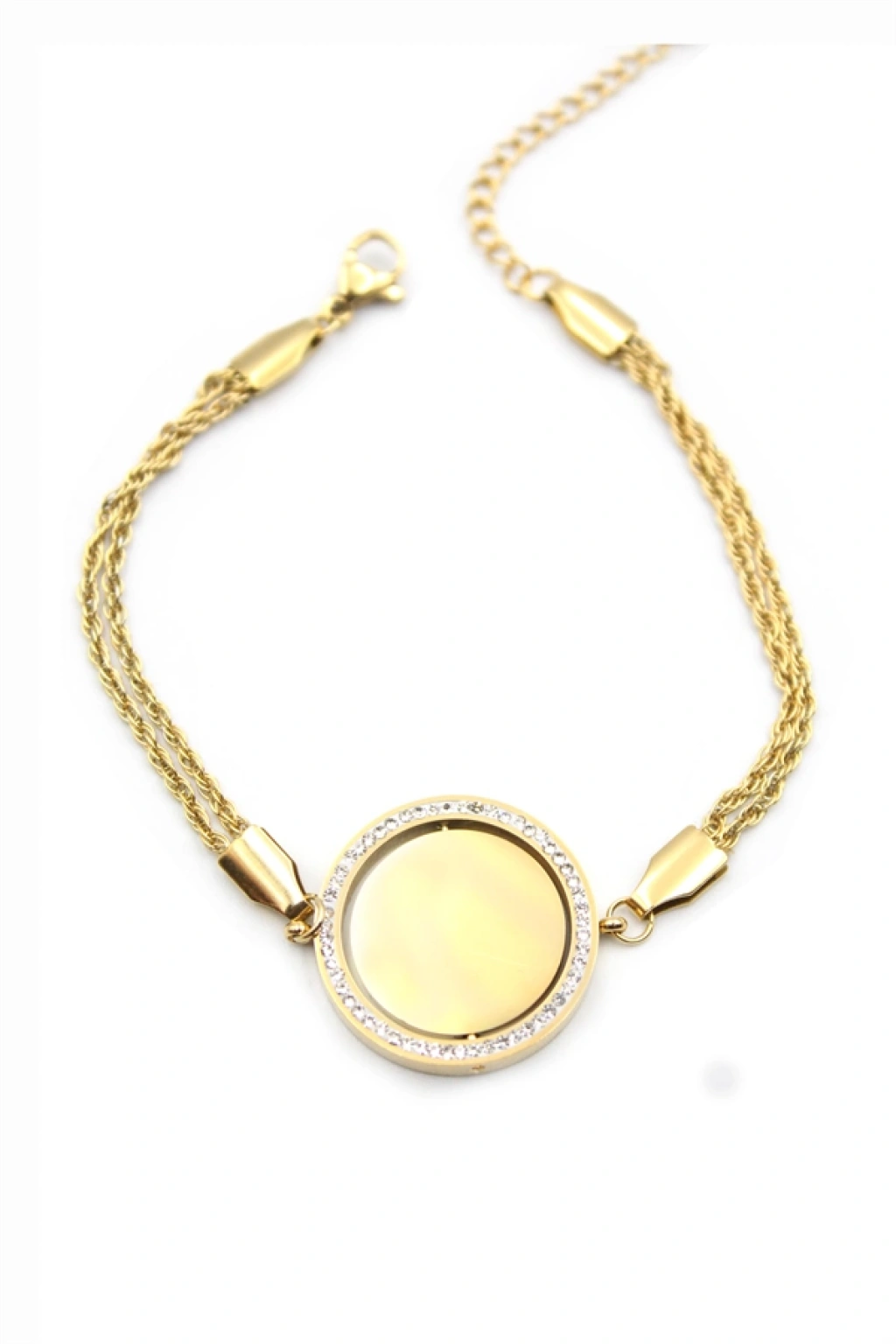 Taşlı Plaka Bileklik - Altın