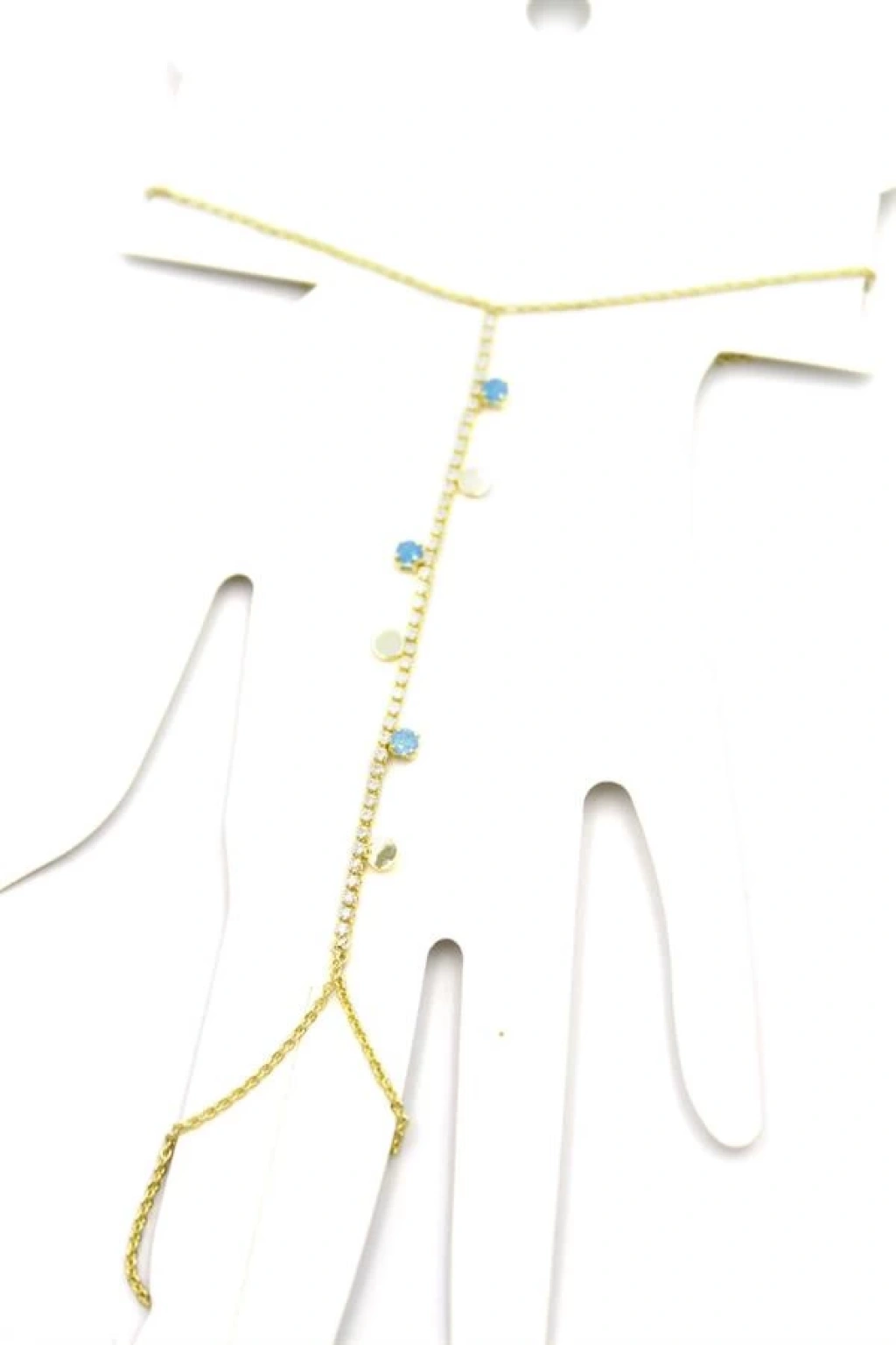BFS Pirinç Zirkon Taşlı Mavi Boncuklu Yonca Model Gold Renk Şahmeran