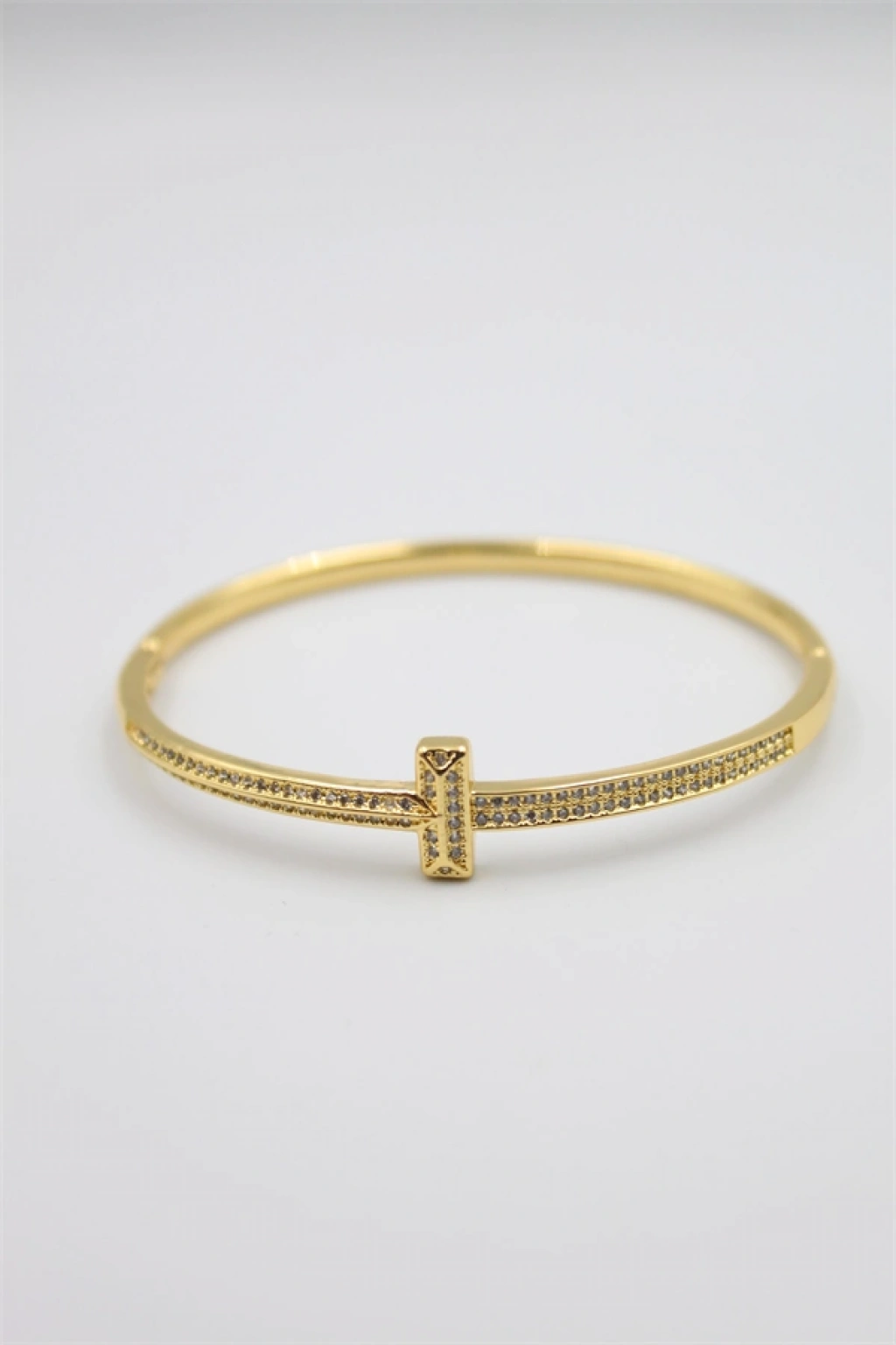 Mey İthalat® Zirkon Taşlı Gold Renk Tek Taş Model 3'lü Kadın Bileklik Kombini