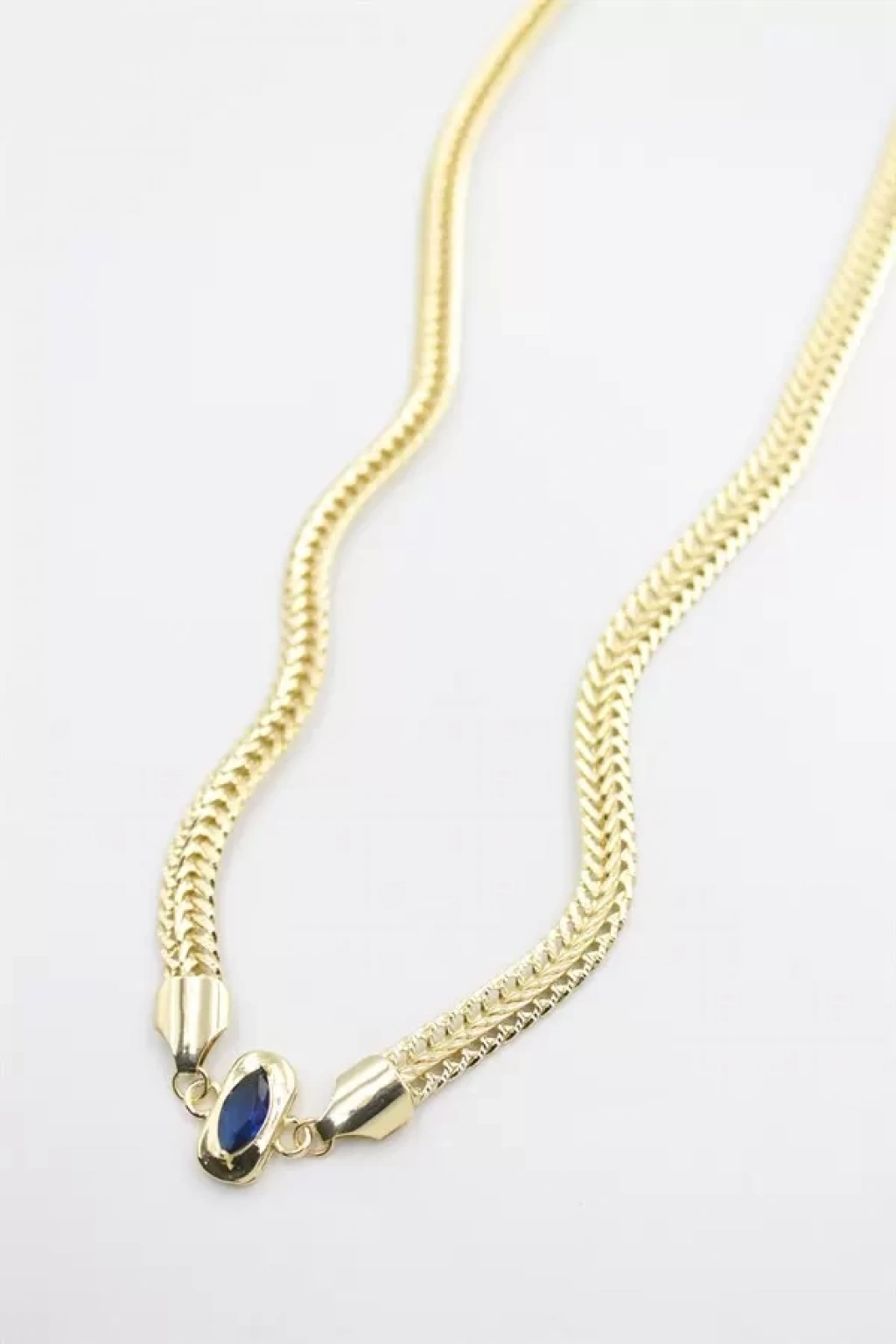 Mey İthalat® 316L Çelik Gold Renk Zirkon Taşlı Y Kadın Kolye