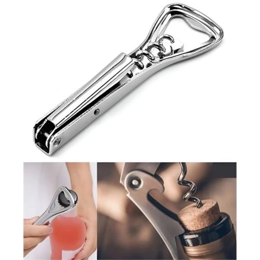 Bir ucu normal kapaklı şişeleri açmak için, diğeri ise mantarlı şişeleri açmak için kullanılan çok amaçlı harika bir mutfak aletidir. Bu kullanışlı cep boyutunda 3 in 1 açacak, her durumda vazgeçilmez açıcınız olacak.