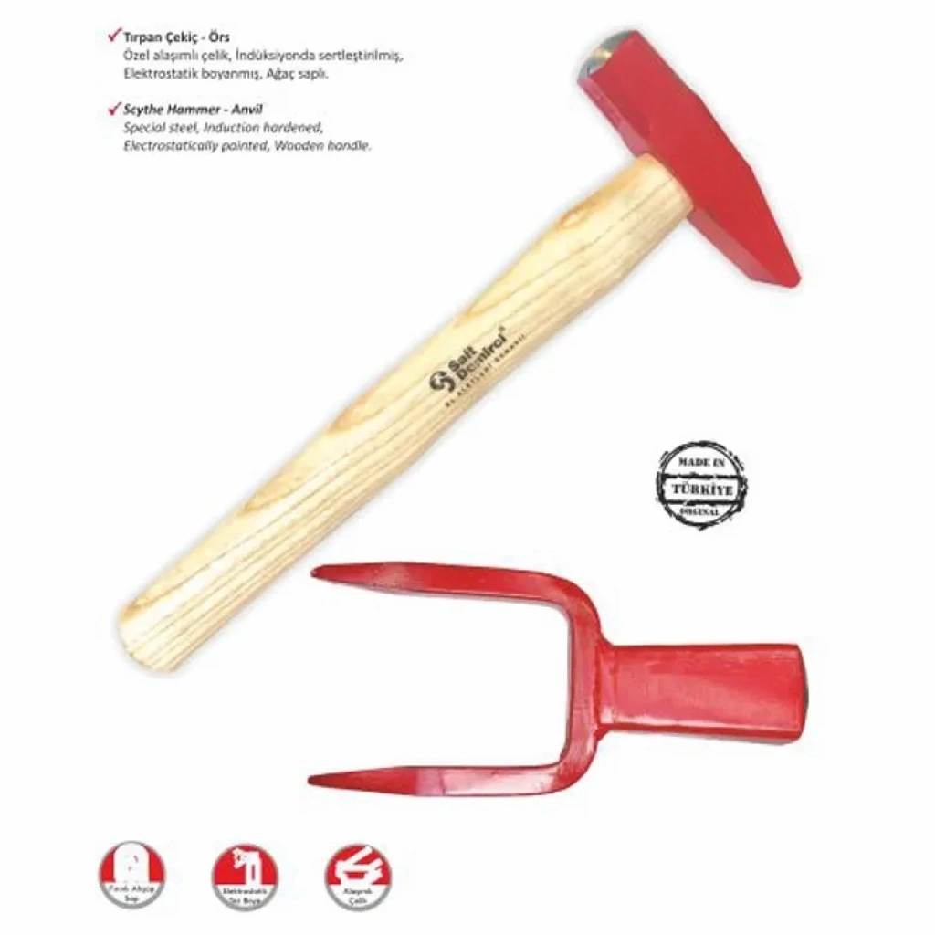 " Tırpan - Çekiç ve Örs Takımı ile her türlü işin üstesinden gelin Bahçenizi budayın, çitleri tamir edin veya küçük inşaat işlerinizi yapın. Bu takım, dayanıklılığı ve çok yönlülüğü sayesinde size zaman kazandırır ve işinizi kolaylaştırır. Türk malı olmasıyla da yerli üretimi desteklemiş olursunuz."