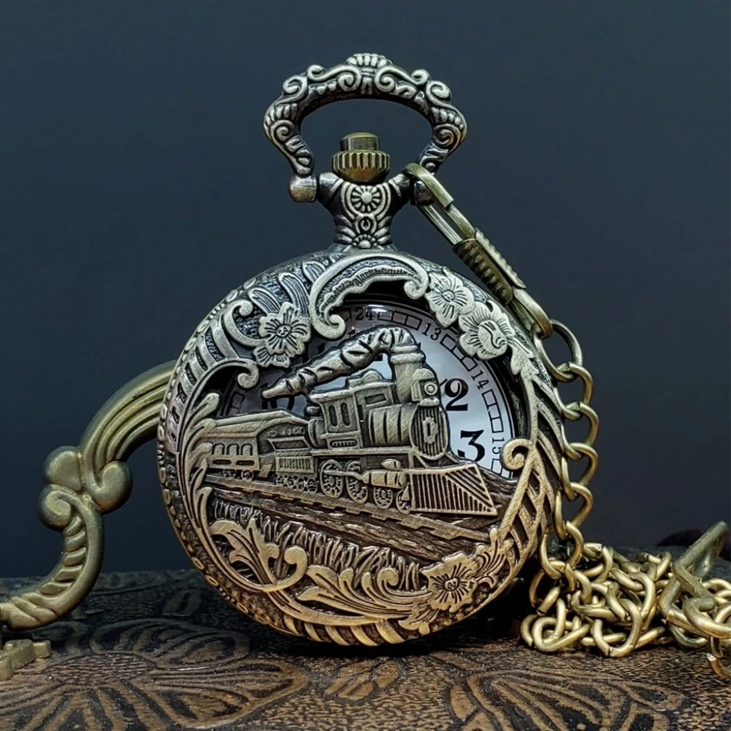 Tren Tasarımlı Köstekli Saat, Kabartmalı Tren Cep Saati, Cep Saati Özellikleri: