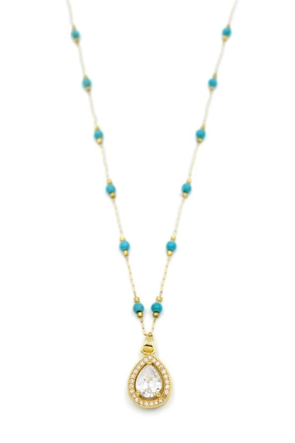Turkuaz Boncuklu Kolye - Altın