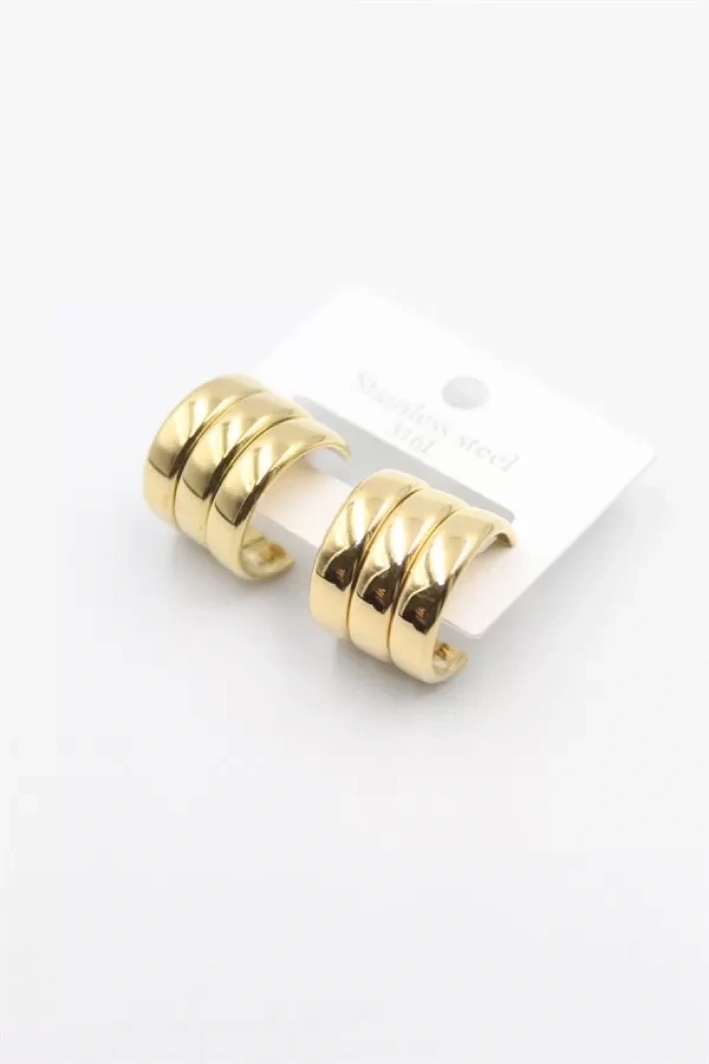 Mey İthalat® Pirinç Gold Renk Üçlü Görünüm Kadın Küpe