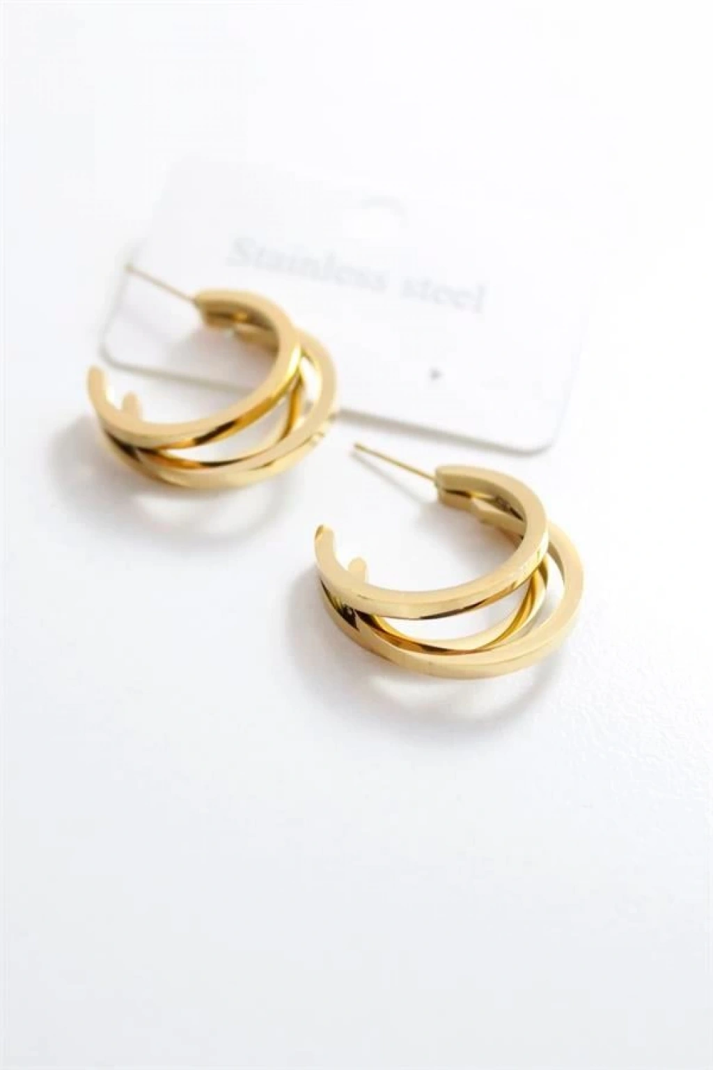 BFS Gold Renk Eğik Halka Model Pirinç Kadın Küpe