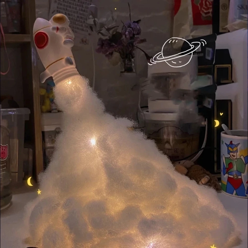 Sevdiğiniz kişilere verebileceğin dekoratif roket üzerinde uçan astronot gece lambası.