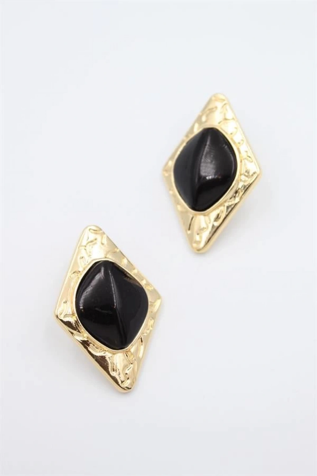 BFS Sallantılı Siyah Mineli Gold Renk Kadın Küpe