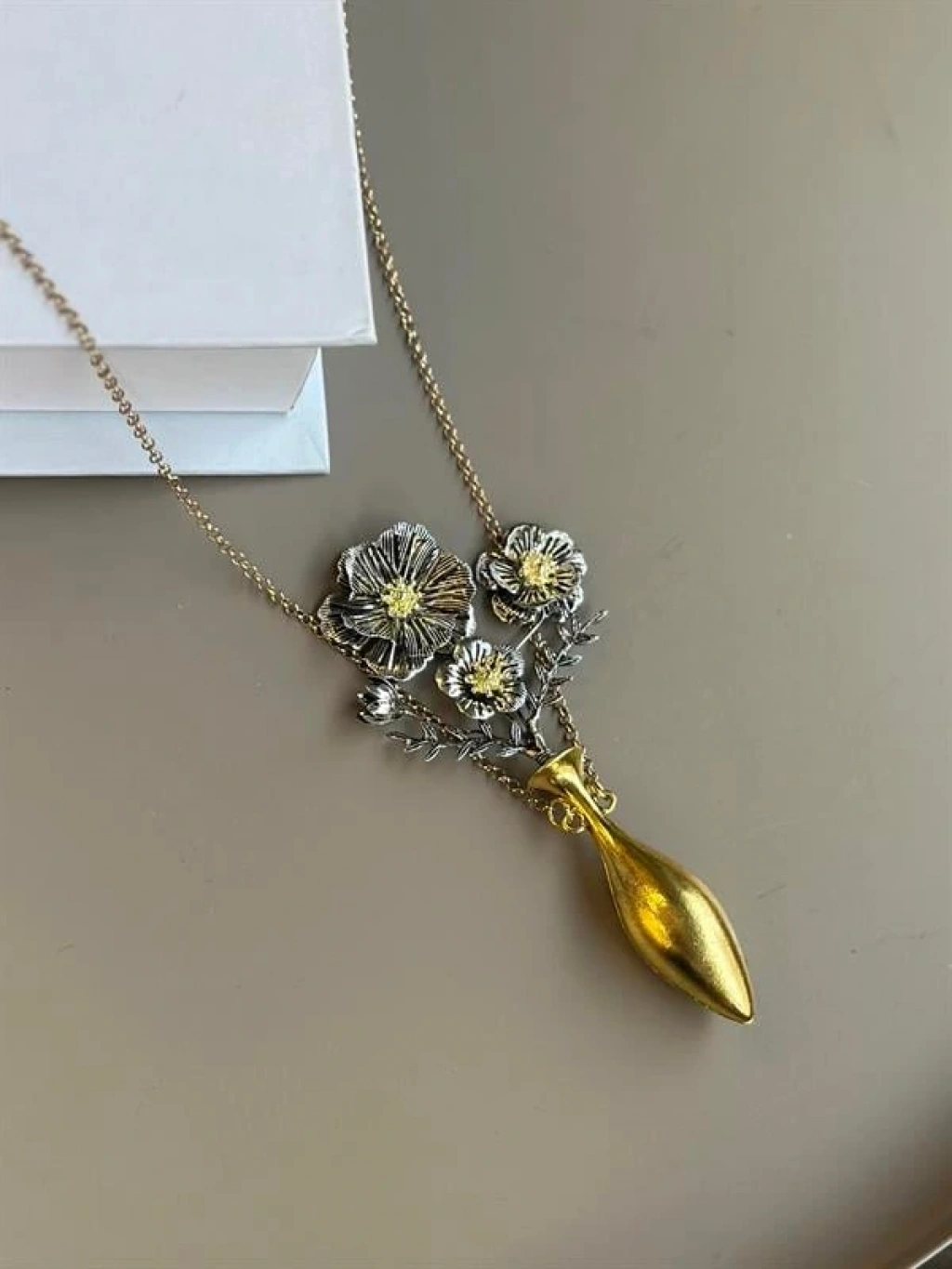 BFS 316L Çelik Zincir Papatya Figürlü Kadın Kolye